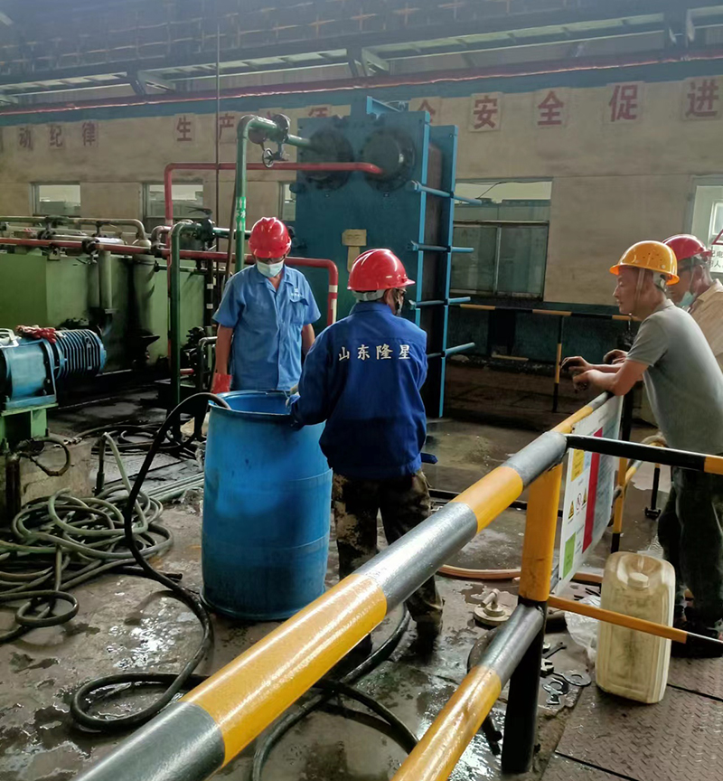 4、酸洗結(jié)束后,用化學(xué)劑軟化水按一定的比例配制好,利用動態(tài)循環(huán)的方式對換熱器進(jìn)行堿洗,達(dá)到酸堿中和,使換熱器板片不再腐蝕;